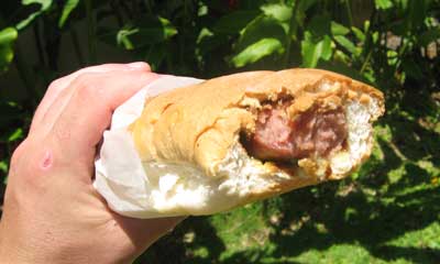 I ordered a polish dog with spicy jalepeno garlic lemon sauce, mango relish, and the lilokai mustard. The polish sausage was a good size, nice and thick and well cooked. The sauces was quite good, though far from spicy. The mango relish is something I would like to get my hands on, it was delicious. The lilokai mustard was also a bit sweet, not something I would really think of as a mustard for a polish sausage, more for a salad dressing. All of them come in something that is not so much a hot dog bun as a hoagie roll with a hole in it instead of being sliced. An interesting package, though far too much bread or too little polish sausage. The extra bread came in handy for feeding the local birds though. You get the dog prepared how you like for $6.25. This place would have been great had the portion been larger or the price been 50% less.