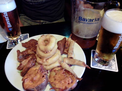 We ordered a pitcher of Bavaria beer and the Belfry Combo Sampler for €13.95. The food was decent for bar bites even if a little pricey, but the beer was a good deal.